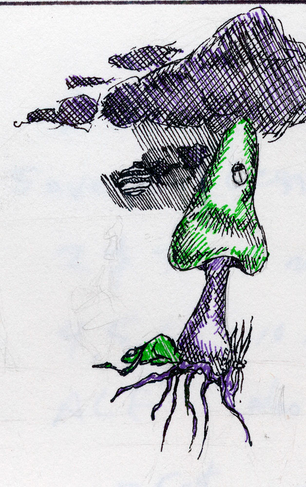 The design is a 4 x 10 panel grid of a 1×1″ graphic I drew in pencil, in which each step was morphed by hand then inked.